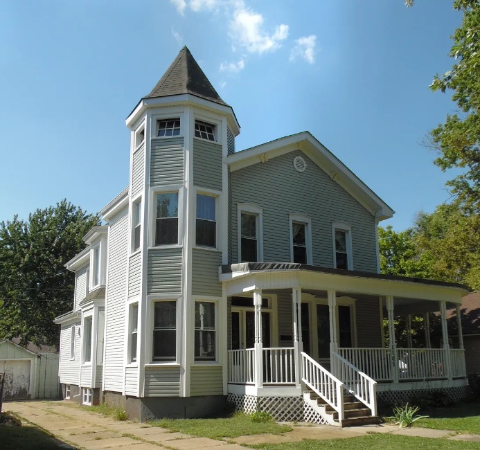 A recent realtor’s photograph of the former C. L. Wilson home at 1105 S. Fourth St., Pekin. Note the later addition of the turret at the southeast corner.