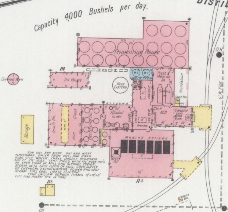 The fermenting house of American Distillery in Pekin is shown in this detail from a Nov. 1903 Sanborn Fire Insurance Map of Pekin.