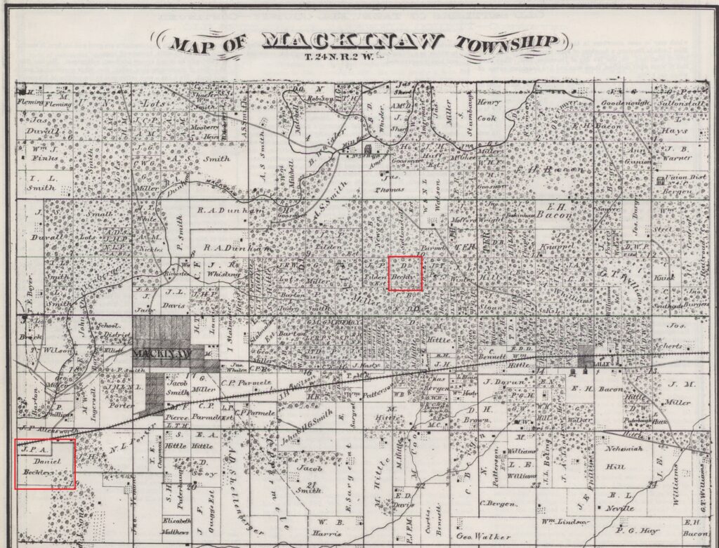 “DANIEL BECKLEY is one of the most highly respected citizens of Mackinaw. He has been prominently connected with its business, social and official interests, for on a number of different occasions he has been called upon to serve his fellow-townsmen in positions of public trust. All who know him esteem him highly for his sterling worth, and we feel assured that this record of his life will prove of interest to many of our readers.