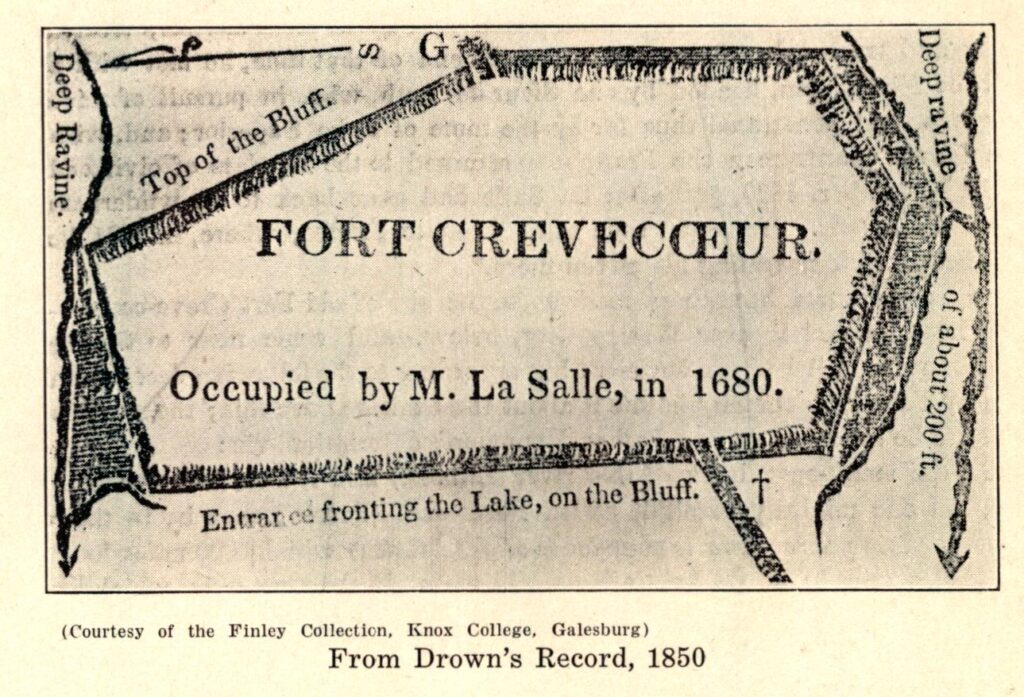No one can say for sure exactly where La Salle’s “Fort Crevecoeur” was, though La Salle described the general area in his journals. He wrote, “On January 15, toward evening a great thaw, which opportunely occurred, rendered the river free from ice from Pimiteoui as far as [the place chosen for the fort]. It was a little hillock about 540 feet from the bank of the river; up to the foot of the hillock the river expanded every time that there fell a heavy rain. Two wide and deep ravines shut in two other sides and one-half of the fourth, which I caused to be closed completely by a ditch joining the two ravines.”