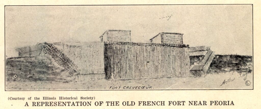 In a 1902 essay, “Historic Pekin!,” Pekin’s early historian W. H. Bates tells how La Salle and his party “landed at what is now Wesley City, Pekin Township, five and a half miles due north from Pekin, and built a large stockade fort on the high bluff above which he named Creve Coeur. “ Wesley City later was renamed Creve Coeur in memory of La Salle’s fort, and until recently the community has looked back to those days every spring and fall with events at Fort Crevecouer Park.