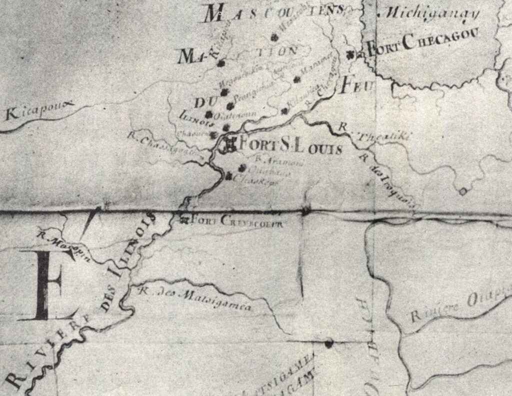 “Pimiteoui” was the Native American name for the area where the Illinois River widens to become what we now know as Peoria Lake. It was also the name of a Native American village located at the future site of Peoria. In his 1879 “History of Tazewell County,” p.33, Charles C. Chapman locates the fort “at the lower end of the lake, on its eastern bank . . . The place where this ancient fort stood may still be seen just below the outlet of Peoria lake.”