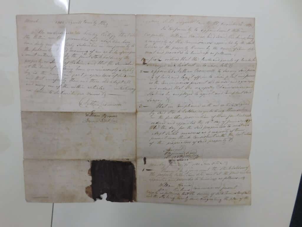 - 28 Dec. 1829 – Nathan Cromwell appointed to survey “Town Site” for a formal plat.