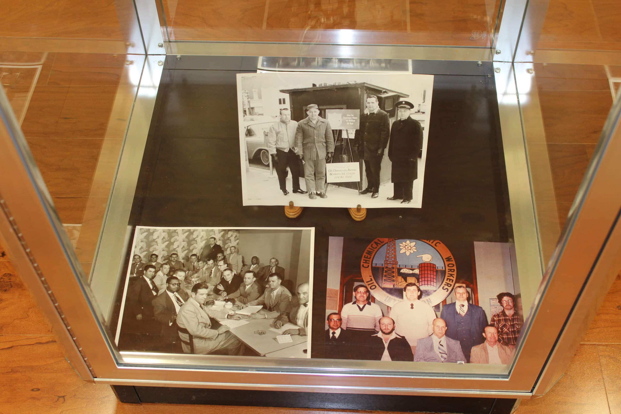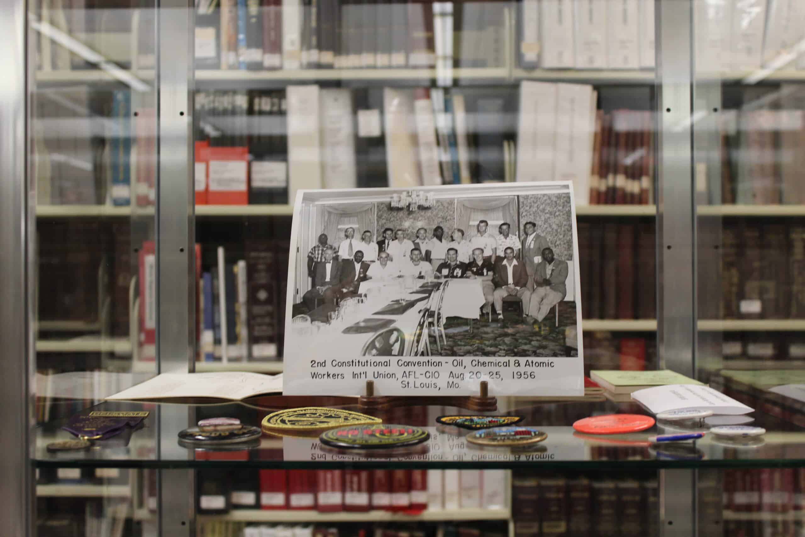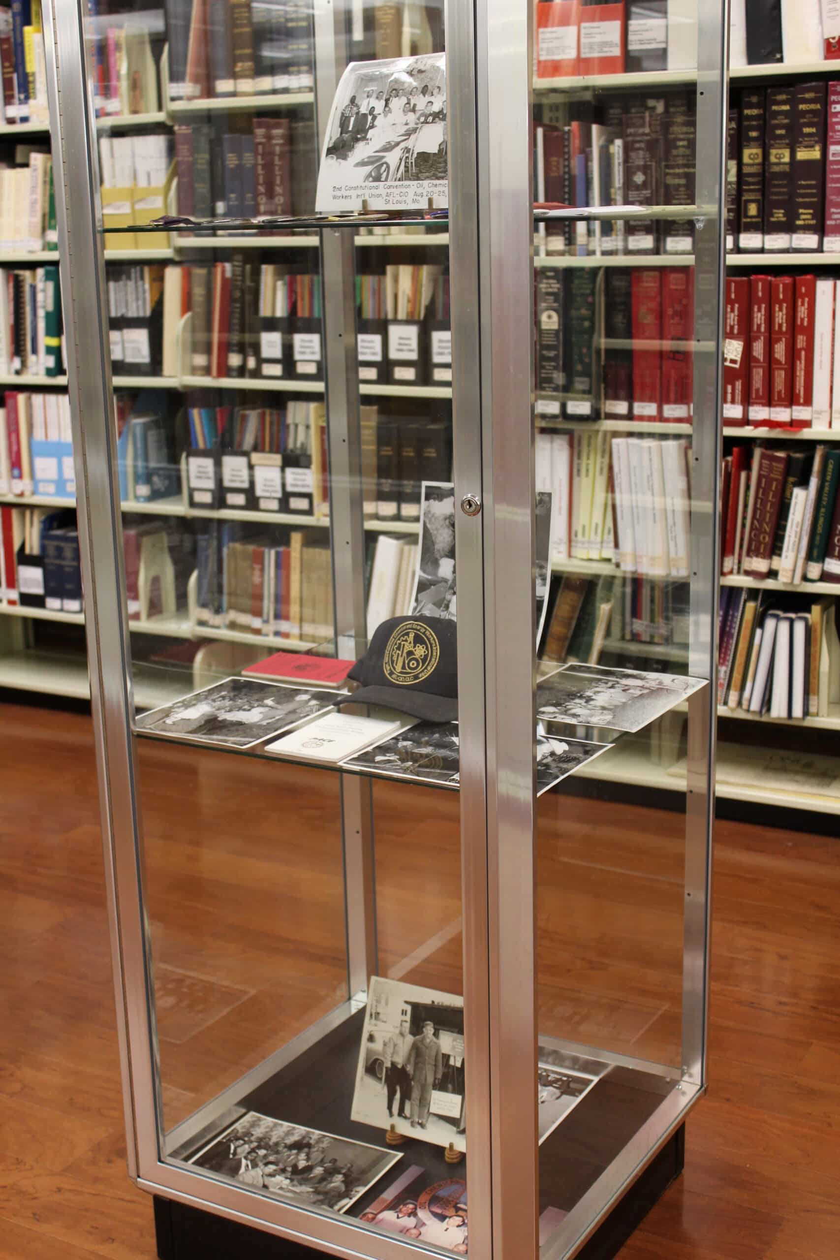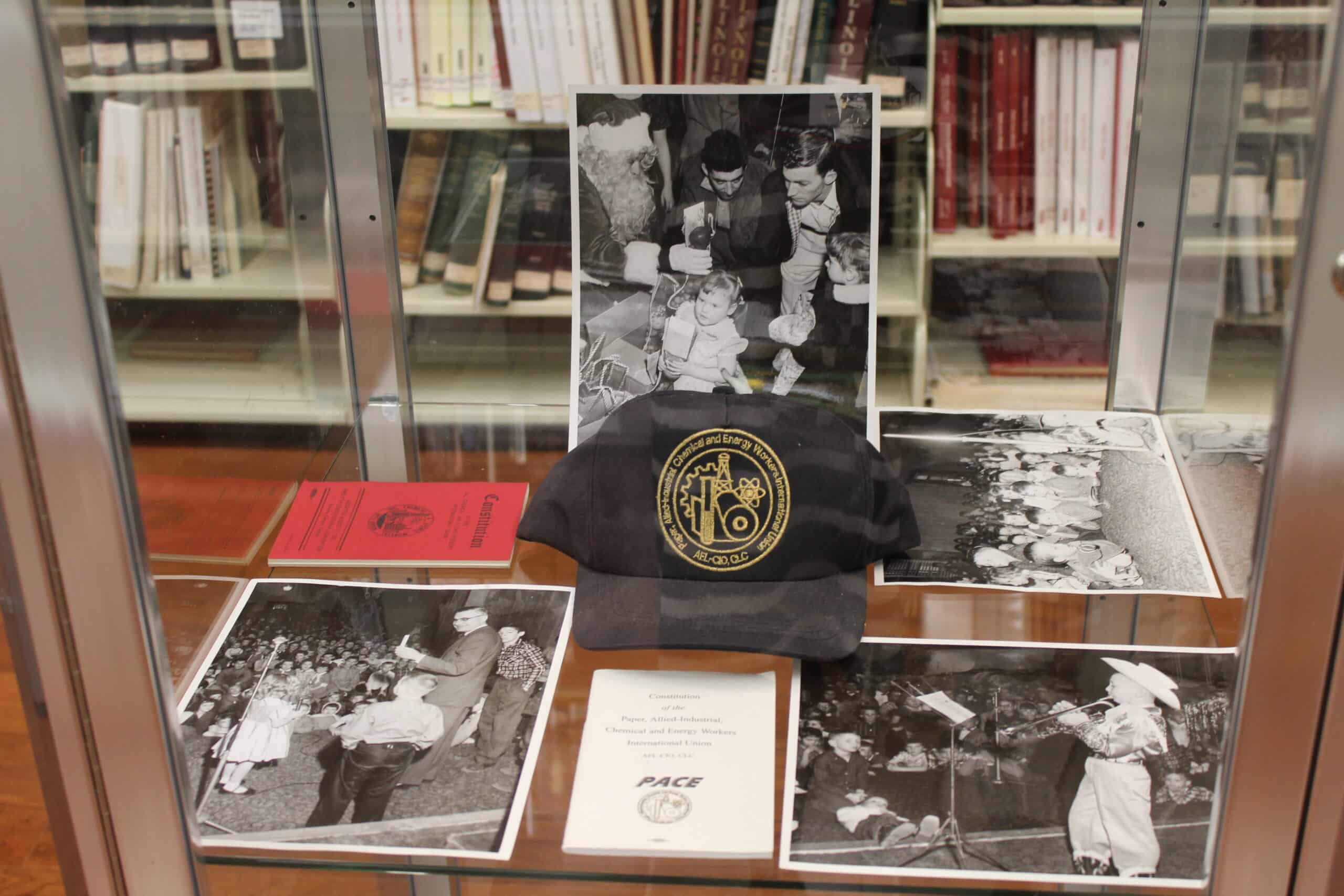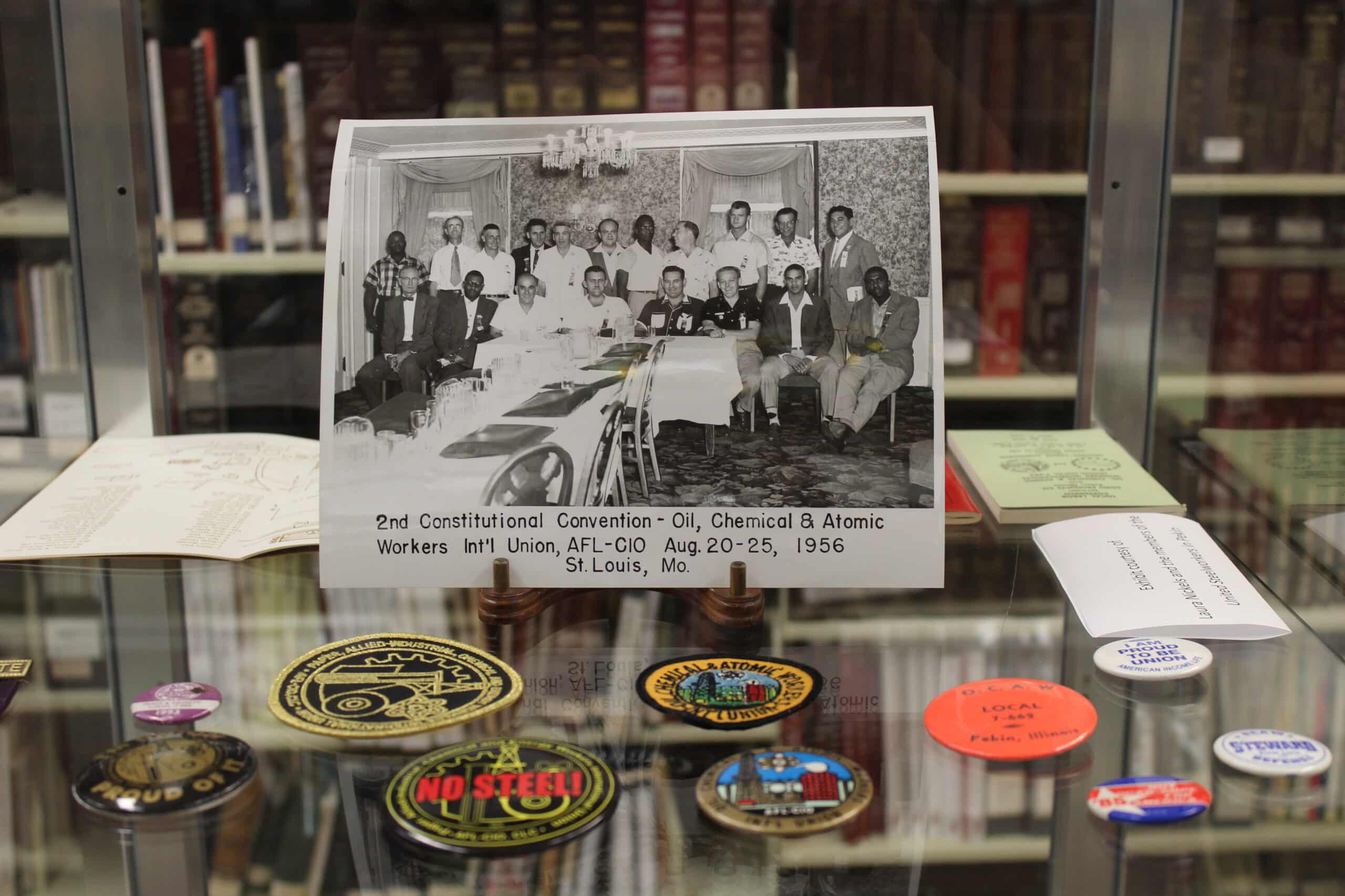 Currently on display in the Pekin Public Library’s Local History Room is a selection of photographs, documents, and mementos from the historical files of Pekin United Steel Workers Local 7662, formerly a local of the Oil, Chemical, and Atomic Workers with members at the old Corn Products plant in Pekin. The display is courtesy of Laura Nickels, financial secretary/treasurer of United Steel Workers Local 7662.