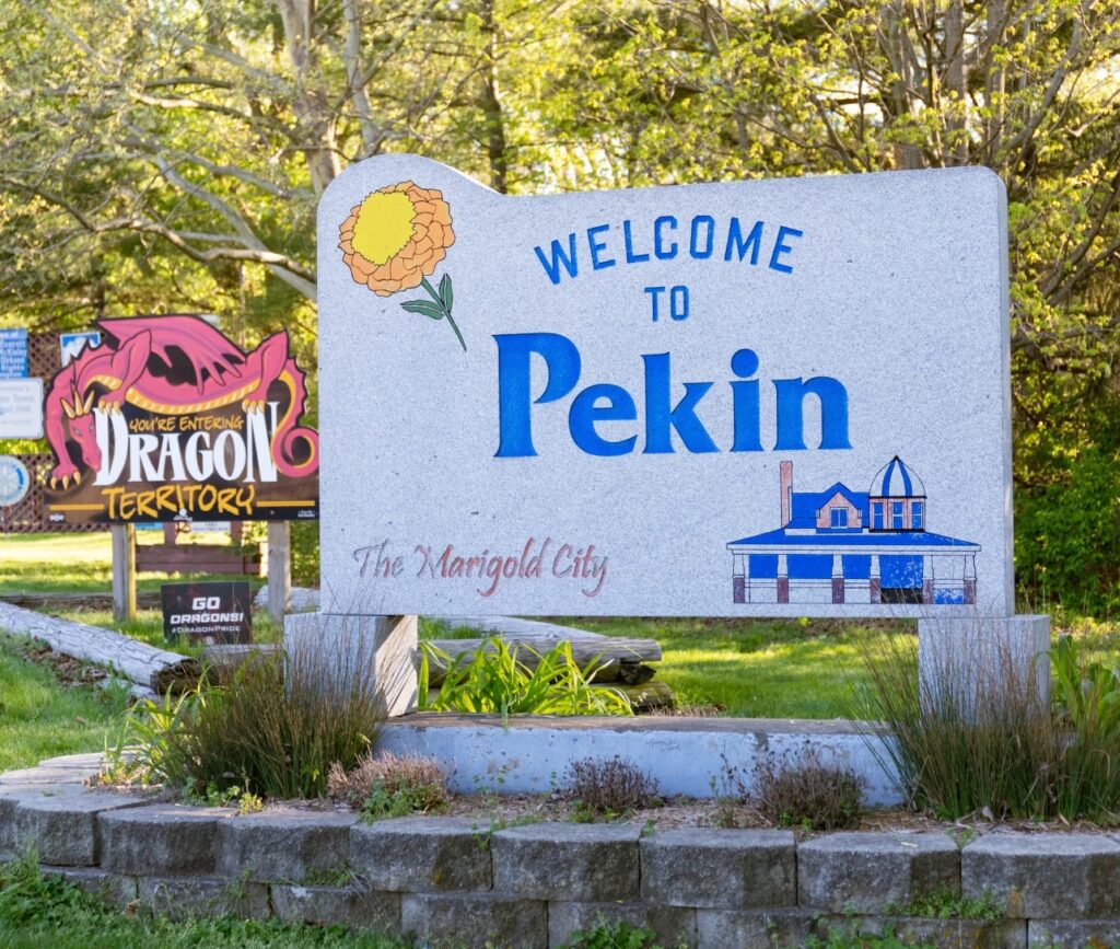 But seriously, folks, you have not been mistaken all your lives. Pekin is not the seat of Macon County, nor is Pekin located on the Sangamon River. We’re the seat of Tazewell County, and that river on our western borders is the Illinois, not the Sangamon. And it is marigolds, not soy beans, for which Pekin is known (though the farms around Pekin have grown quite a lot of soy beans). Our annual autumnal festival is the Marigold Festival, not the Soy Bean Festival. While Pekin’s industrial district has been home to agricultural food processing factories, it would be not entirely accurate to say that Pekin owes much of its growth and prosperity to agricultural food processing.
